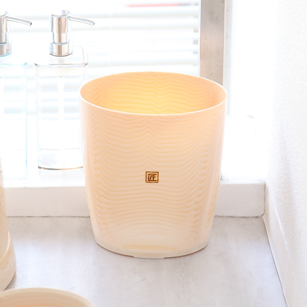 柔らかい色彩の木目調の模様が特徴的な浴用クズ入れです。暖かみのある木目調は優しい雰囲気でどんなバスルームにもぴったりです。リアルな木目模様は表面だけの着色ではないので、消えたりめくれたりしにくいです。