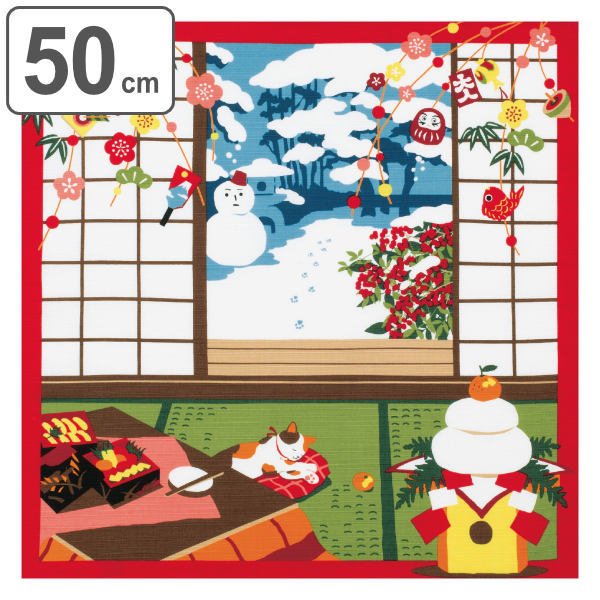 風呂敷 ランチクロス お弁当 50cm 中巾 三毛猫みけの夢日記 小ふろしき みけの初夢 ( 風呂敷き ふろしき お弁当包み 50センチ 和柄 綿 日本製 ネコ )