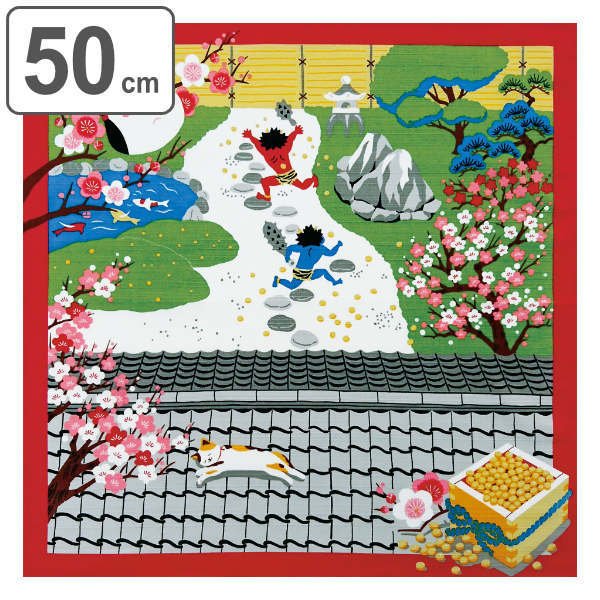 風呂敷 ランチクロス お弁当 50cm 中巾 三毛猫みけの夢日記 小ふろしき みけの節分 ( 風呂敷き ふろしき お弁当包み 50センチ 和柄 綿 日本製 ネコ )
