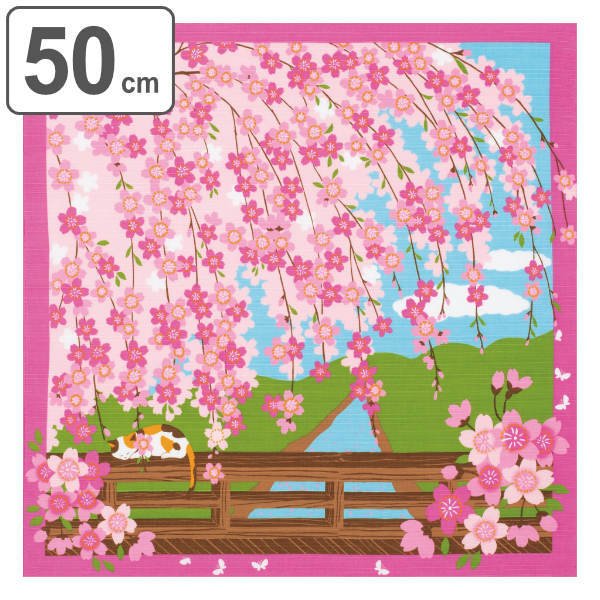 風呂敷 ランチクロス お弁当 50cm 中巾 三毛猫みけの夢日記 小ふろしき みけのお花見 ( 風呂敷き ふろしき お弁当包み 50センチ 和柄 綿 日本製 ネコ )