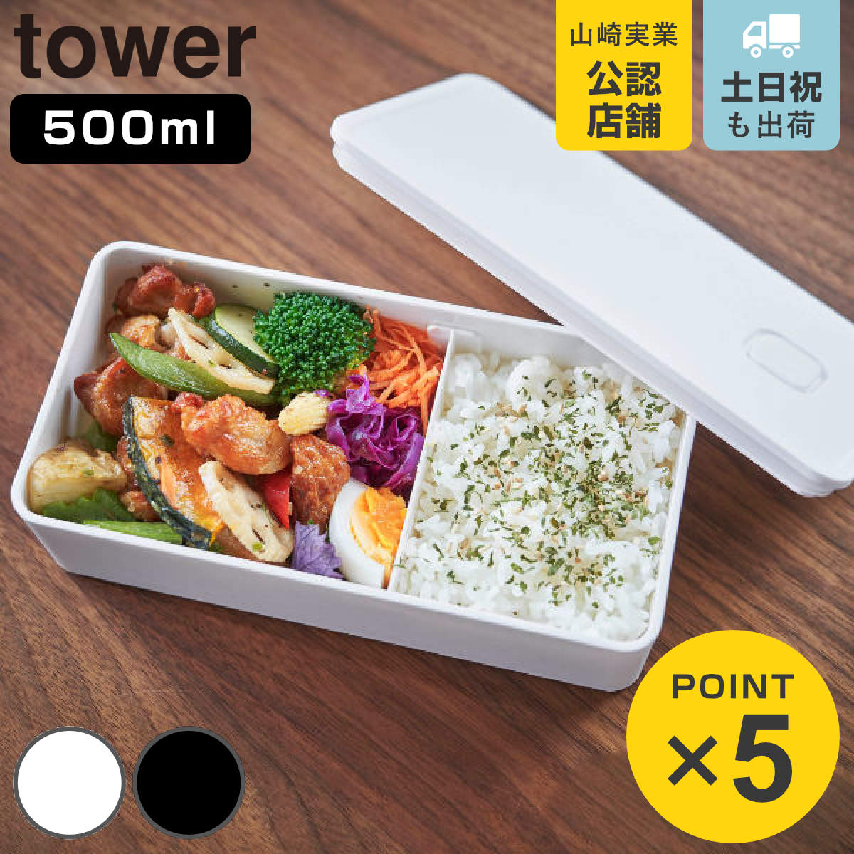 山崎実業 tower バルブ付き密閉ランチボックス タワー ワイド ( 4903208054713 弁当箱 レンジ対応 食洗機対応 一段 保存容器 レンジOK 食洗機OK 仕切り付き )