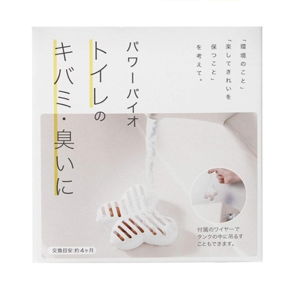 トイレの黄ばみ・臭いに容器の中にあるパワーバイオが水に溶けだして、あらゆる臭いの元と尿石を分解します。無臭なので、洗剤特有の臭いが気になる方にもオススメです。効果は約4ヶ月です。