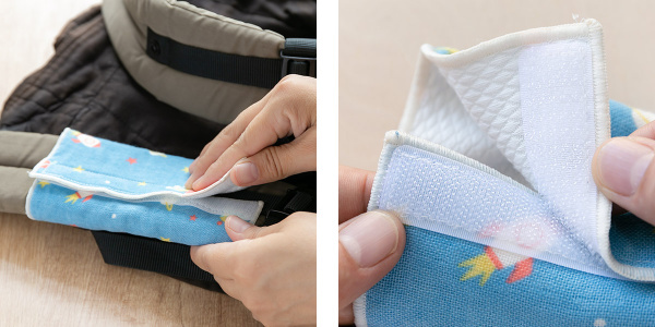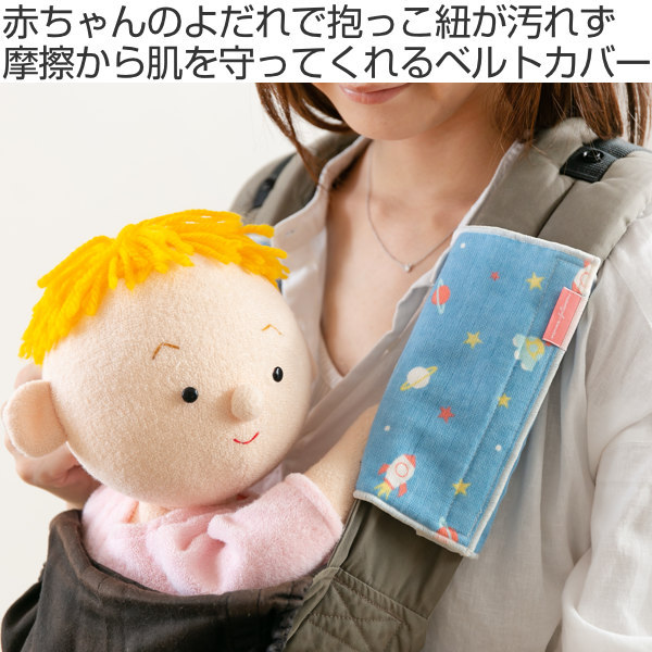 赤ちゃんのよだれで抱っこ紐などが汚れてしまうのを防いでくれるベルトカバーです。なかなか洗うことができない抱っこ紐を清潔に保ってくれます。また、赤ちゃんのデリケート肌を抱っこ紐との摩擦から守ってくれます。