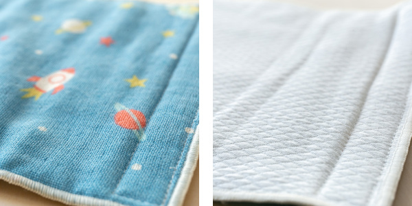 こちらの商品はお子さまにとって安心・安全な綿100%で作られています。肌への刺激が少ない綿は、デリケートな肌の赤ちゃんにぴったりな素材です。やさしい触り心地と優れた吸水性は赤ちゃんにも大人にも嬉しいポイントです。