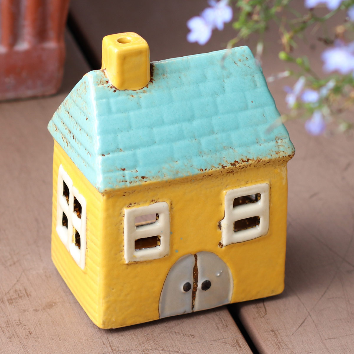ガーデン 雑貨 インテリア ロウソク立て ろうそく立て ディスプレイ メルヘン 手作り 手作業 ハンドメイド 可愛い かわいい カワイイ おしゃれ いえ ランタン LEDキャンドル プレゼント 贈物 ギフト ガーデンインテリア 滑り止め付き 窓 小窓 煙突 卓上 机 イエロー ブルー 黄 青 水色 LH10935