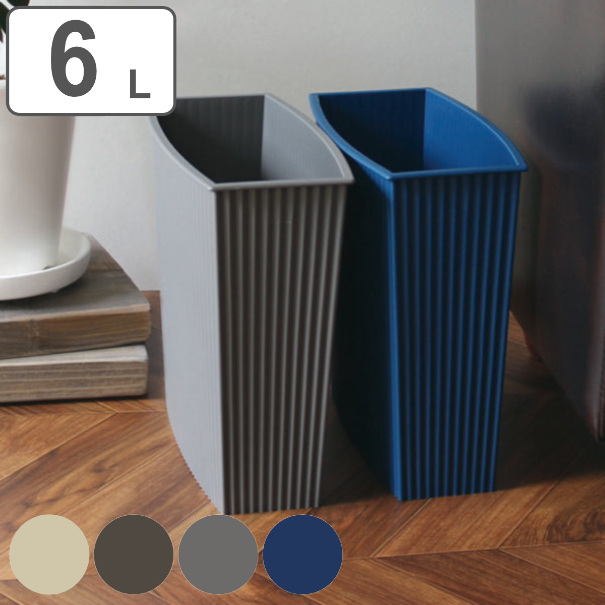 ゴミ箱 6L フタなし ウェイビー くず入れ 角型 ( ごみ箱 5リットル スリム 小さい 角 ふたなし リビング プラスチック 日本製 )