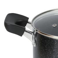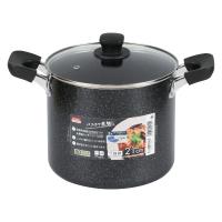 | 材質 | 本体:アルミニウム合金 表面加工:ふっ素樹脂塗膜加工 はり底:ステンレス鋼(クロム16%) 取っ手:フェノール樹脂 蓋:強化ガラス 縁リング:ステンレス鋼 つまみ:フェノール樹脂 つまみの座板:ナイロン |