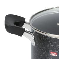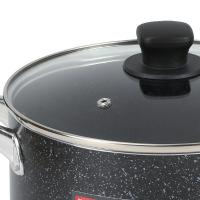 | 材質 | 本体:アルミニウム合金 表面加工:ふっ素樹脂塗膜加工 はり底:ステンレス鋼(クロム16%) 取っ手:フェノール樹脂 蓋:強化ガラス 縁リング:ステンレス鋼 つまみ:フェノール樹脂 つまみの座板:ナイロン |