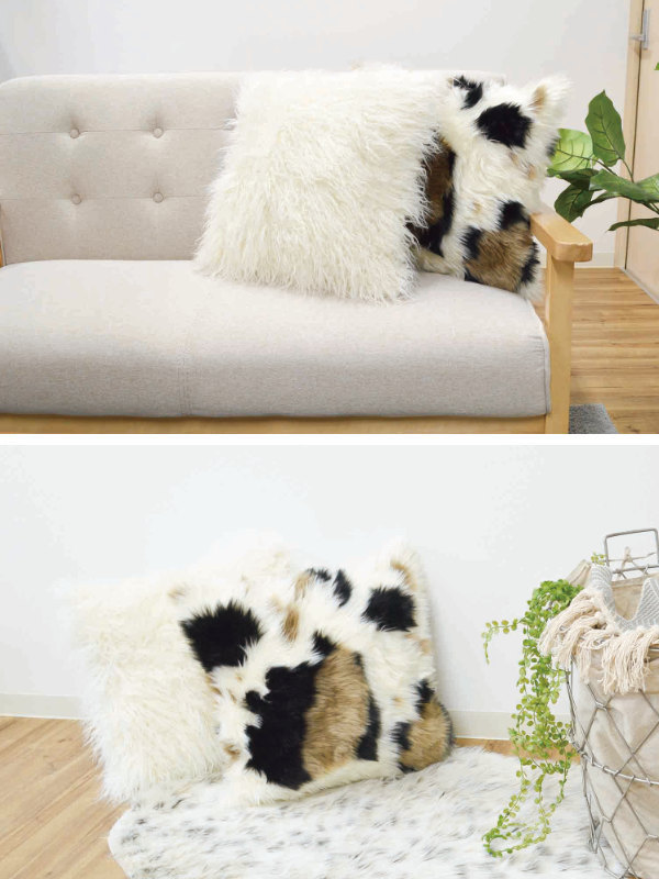 上品な毛並みのアニマルフェイクファー●アニマルのような毛並みがインパクト抜群のクッションカバーです。