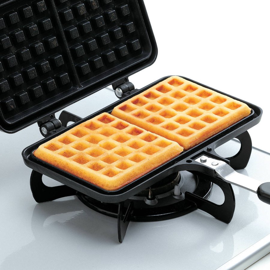 手作りお菓子でお家時間を楽しく●一度に二個のワッフルが焼ける、ガス火専用(Siセンサー付きコンロ不可)のワッフルメーカーです。