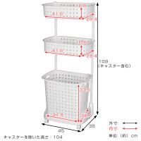 | サイズ | 約 幅45×奥行35×高さ109(cm) 内寸/上バスケット:約 幅41.6×奥行28.4×高さ10.8(cm) 下バスケット:約 幅34.8×奥行24.8×高さ36.5(cm) |