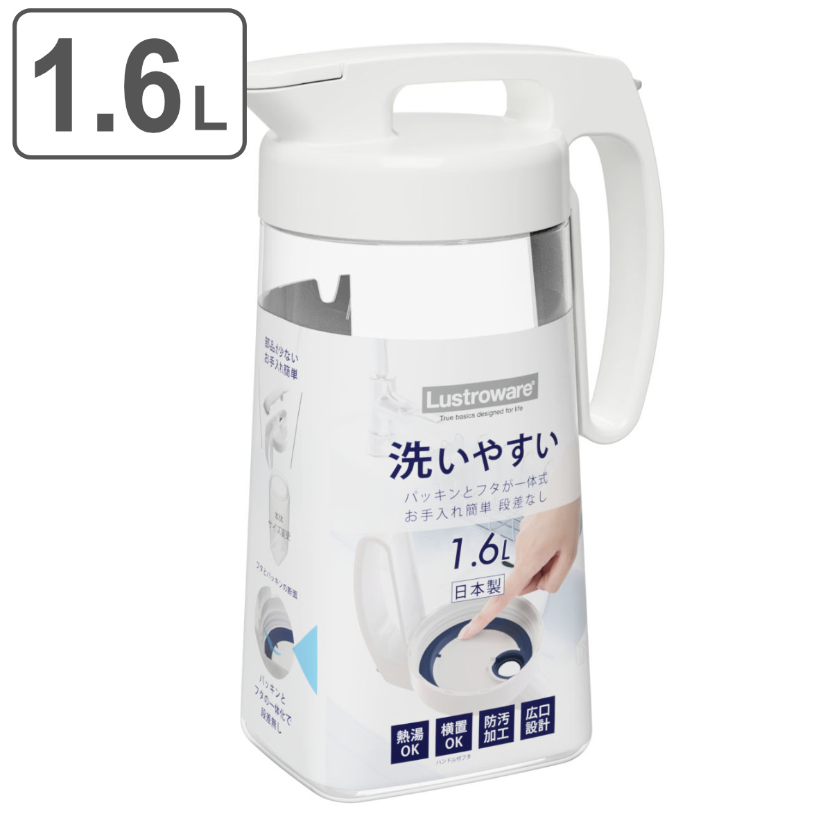シームレスピッチャー 1.6L軽くて割れにくい、プラスチック製のピッチャーです。ご家族分の麦茶作りに便利な大容量サイズです。シンプルな見た目ながら、使いやすさにこだわった機能が詰まったピッチャーです。