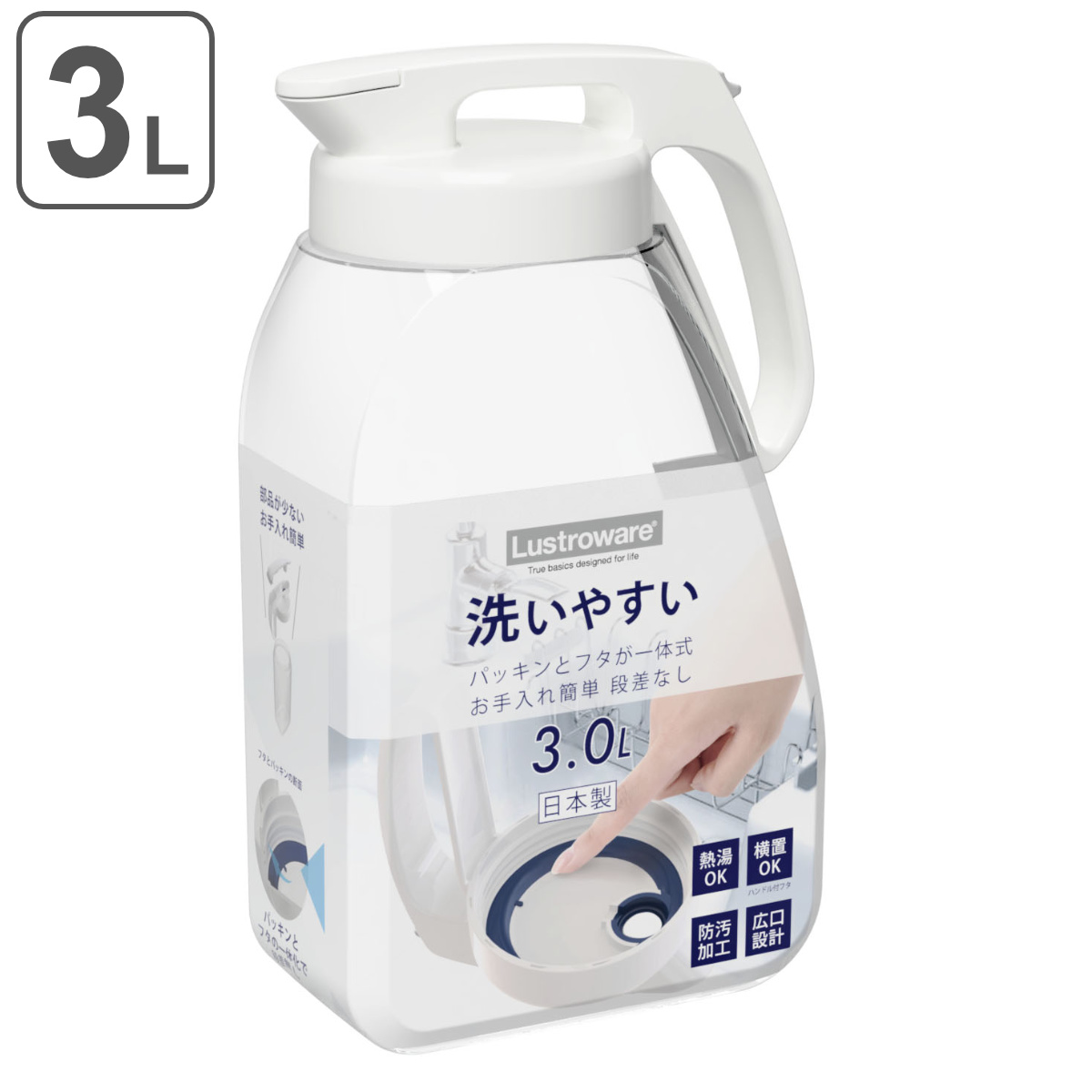 フタとパッキンが一体化したシームレスピッチャー●パッキンとフタが一体化した、シームレスピッチャーです。