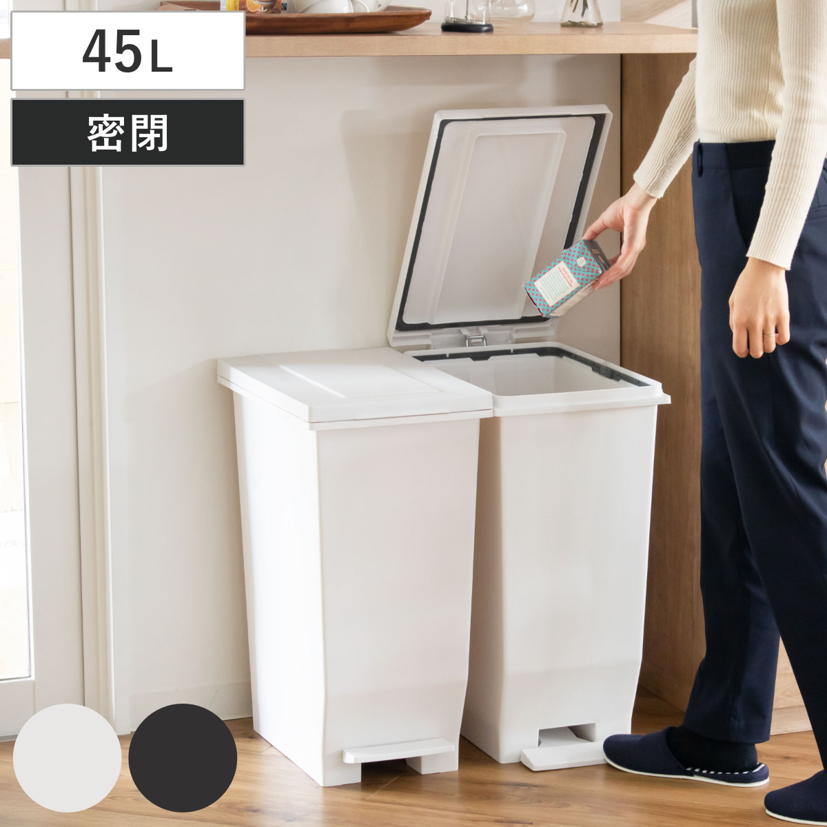 スペースに合わせて選べる3サイズ展開容量は20L、30L、45Lからお選びいただけます。分別用に並べて置いても圧迫感がなく、統一感のある空間を作ります。
