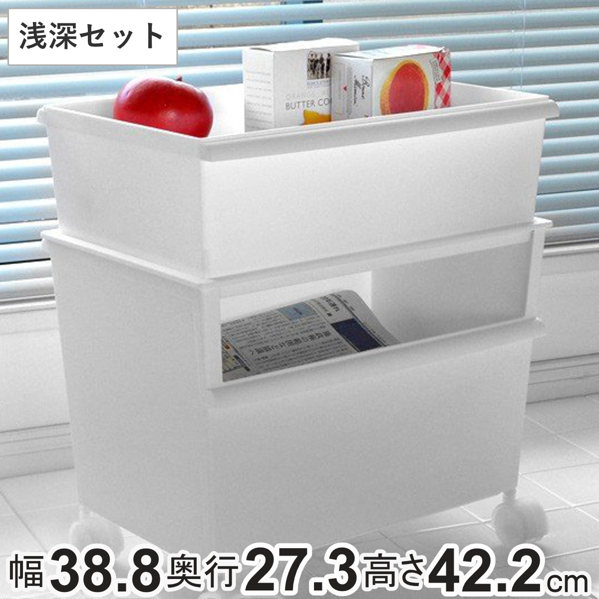 | 内容量 | ワイド深型1個、ワイド浅型1個 付属品:フタ1枚、キャスター4個 |