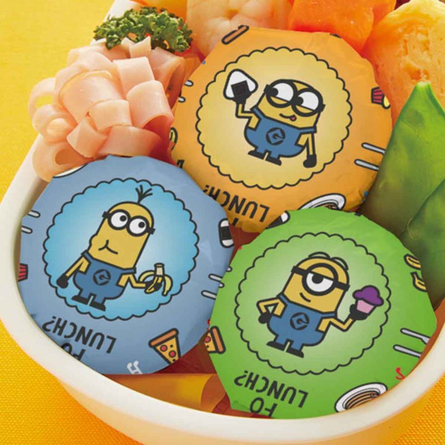 デザイン違いが5種類ボブ、ケビン、スチュアート、トム、カールがデザインされた5種類のシートがそれぞれ2枚で、合計10枚入っています。ご飯を包んだ後にシートを留めるシールも付いています。それぞれデザインが異なるので、その日の気分に合わせてご使用いただけます。