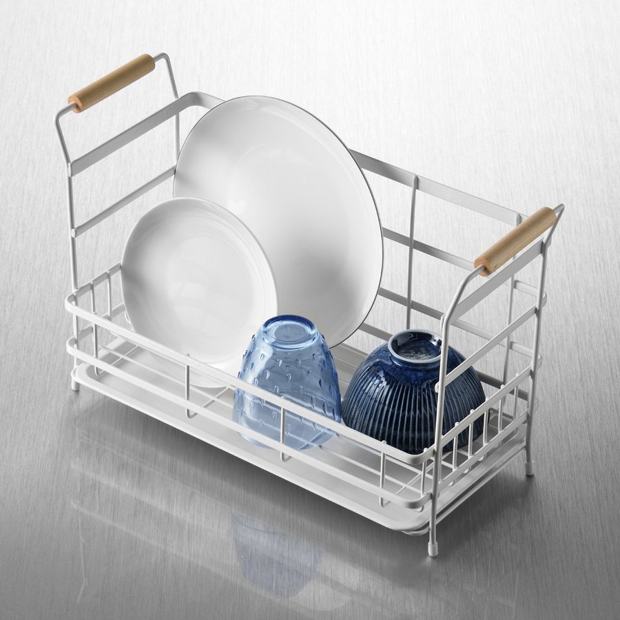 コンパクトなのに大皿も立てられる一人暮らしの狭いキッチンや、食洗機をメインで使用しているご家庭にオススメの邪魔にならずに使える水切りバスケットです。スリムながら深めなので、大きなお皿も立てられます。出し入れしやすいように正面は浅めになっています。