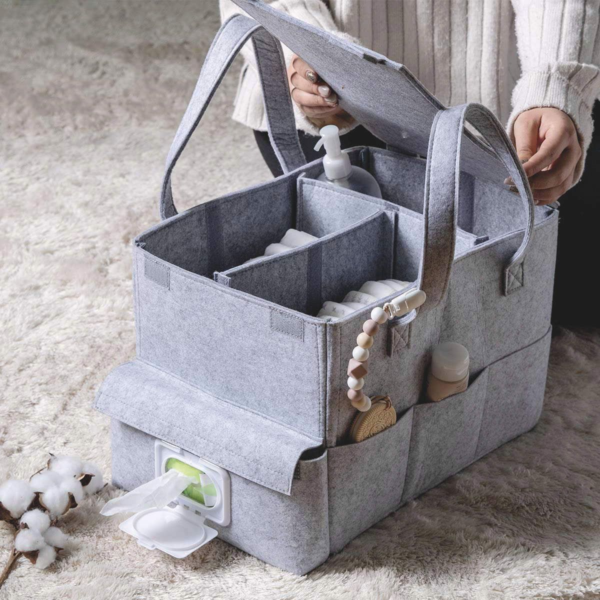 | 取っ手付きで持ち運べる 日常的におうちで使用するのはもちろん、旅行などの外出先でも使用しやすいように取っ手が付いています。外出時に入れ替えることなく持ち運べます。 | 自動車での外出用に 必要なものがたくさんすっきりと収まるので、自動車での外出用に車内に置いておくのもおすすめです。毎回用意する必要がなくなるので。忘れ物も減ります。 |