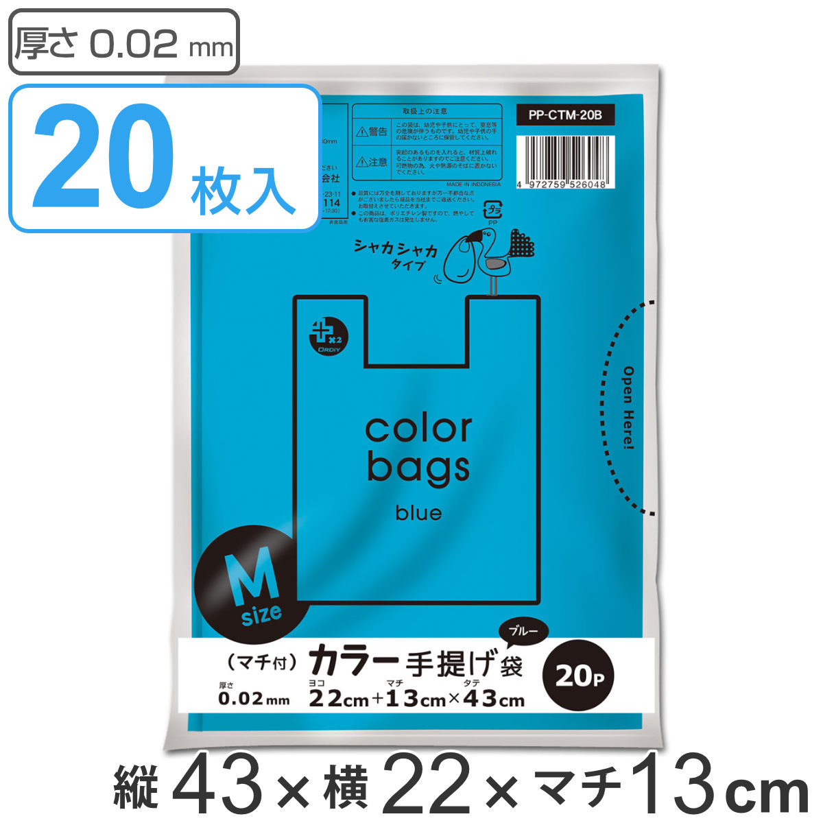 レジ袋 43×22cm マチ13cm 厚さ0.02mm 20枚入り ブルー ( ポリ袋 20枚 幅22cm 高さ43cm 半透明 取っ手付き シャカシャカ )