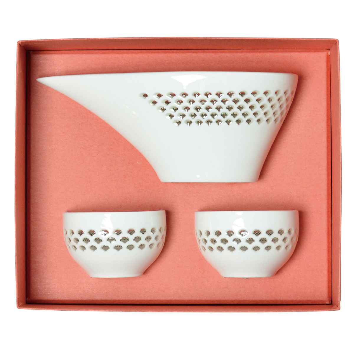 透かし彫りが印象的な酒器●透かし彫りが印象的な片口とぐいのみ(2個入り)のセットです。