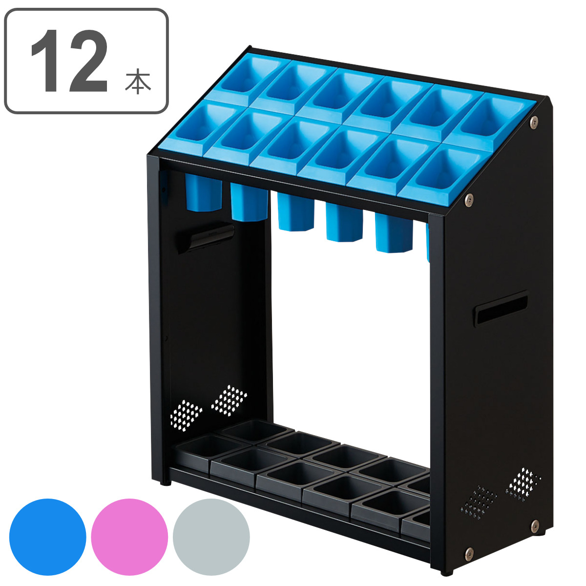 デザイン傘立て12本用機能性と安全性に配慮しており、子どもから大人まで傘が取り入れしやすくなっています。見た目もスッキリし、傘の定位置が定まります。
