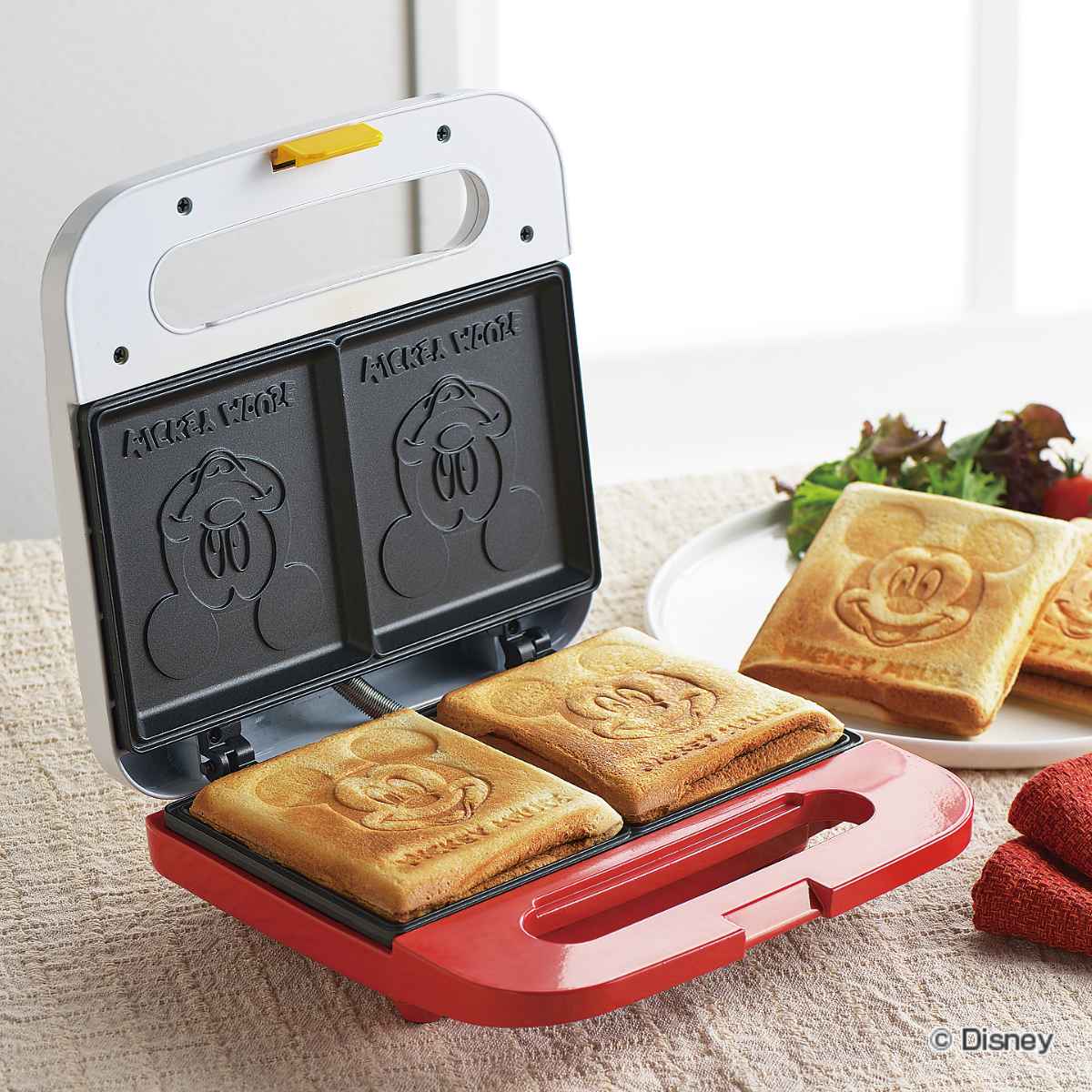 ミッキーのフェイスマーク焼き印が2枚同時に焼けて可愛い●焼き面にかわいいミッキーのフェイスマークがつくホットサンドメーカーWです。