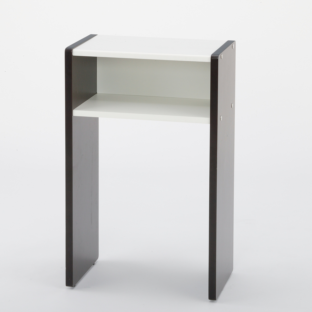 シンプルなデザインの木製テレフォンテーブル 幅50cmダークとホワイトのツートンカラーが目を引く木製テレフォンテーブルです。記帳台や消毒液置きなど多目的にご利用いただけます。