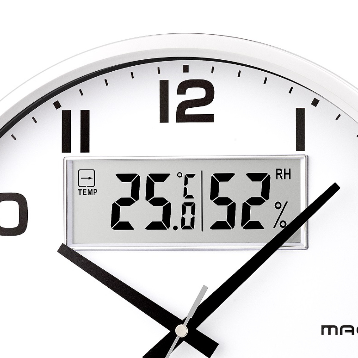 温度計・湿度計冬場の乾燥対策から夏場の熱中症対策まで、お部屋の環境を調整する目安になってくれる温湿度計が付いた掛け時計です。温度・湿度のバランスをチェックすることは室内環境を整える目安となるので、赤ちゃんや高齢者、ペットなどがいて室内環境に注意したいご家庭におすすめです。