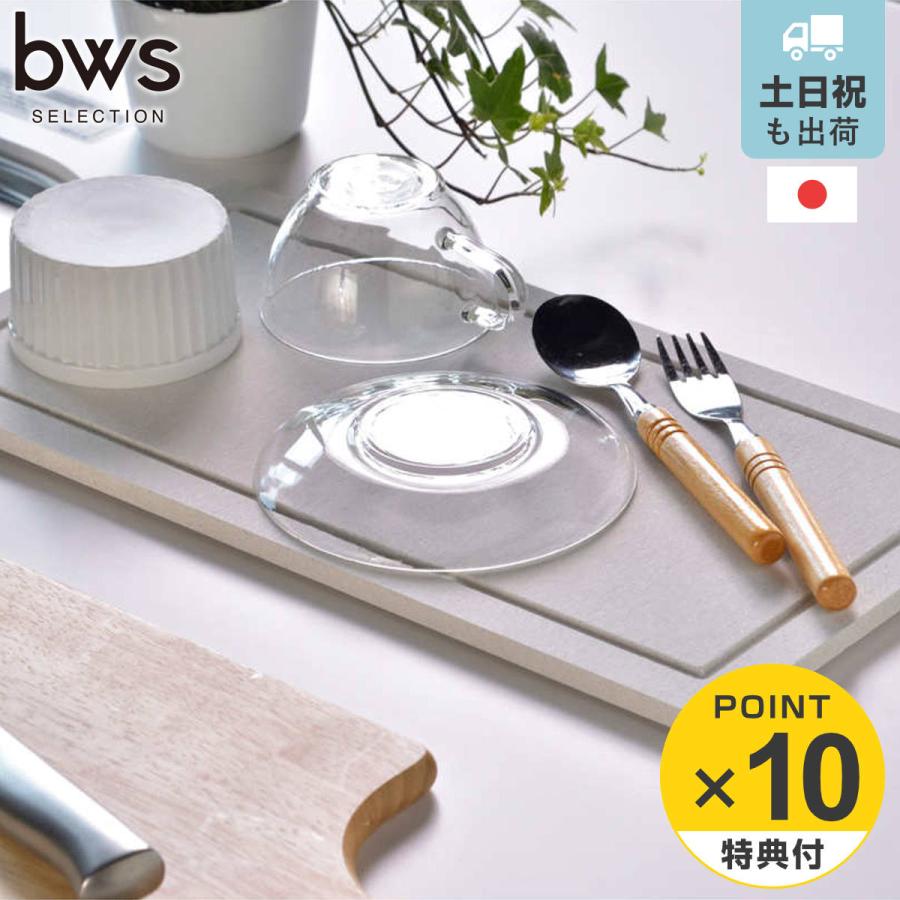 水気をぐんぐん吸い取るモイストレイは洗い物から落ちた水滴をサッと吸収し、徐々に空気中に放出してくれます。水が溜まらないのでシンクに流す手間が省ける上、水垢やぬめりが付く心配もなく、お手入れが簡単です。