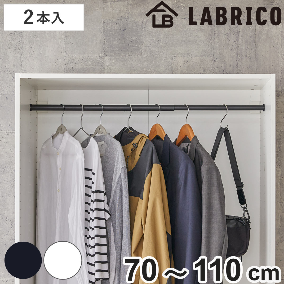 伸縮アイアンロッドM 2本入りここにハンガーパイプがあったら・・・を叶えるアイテムです。空いたスペースに取り付ければ、手軽にハンガーラックへと変えられます。パイプをカットする手間がない伸縮式ポールなので、設置場所に合わせて簡単に取り付けできます。特別な技術がなくても、安全にDIYを楽しめる「LABRICO(ラブリコ)シリーズ」です。