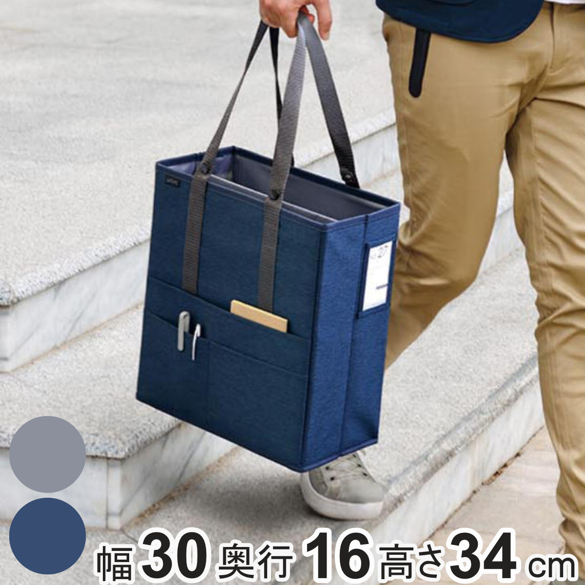 ファイルボックス ポケット付き PCケース オフィスバッグ 書類ケース 幅30×奥行16×高さ34cm 幅30 cm センチ 14インチ ノートPC カードホルダー 仕切り 折りたたみ 折り畳み コンパクト 省スペース キャビネット ロッカー 棚 フリーアドレス 収納ボックス 肩掛け 便利 おすすめ おススメ グッズ オフィス 会社 整理整頓 整理 整頓 片付け 在宅勤務 在宅ワーク テレワーク リモート お仕事セット ひとまとめ 仕事道具 ネイビー グレー トートバッグ 縦型 クリアフォルダー ファイル カタログ LH10370