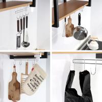 金具部分を付け替えると、前後どちら向きにでも取り付けることができます。向きを変えることで、フック部分を吊戸棚よりも手前に回転させることができ、より収納しているものが手に取りやすくなります。