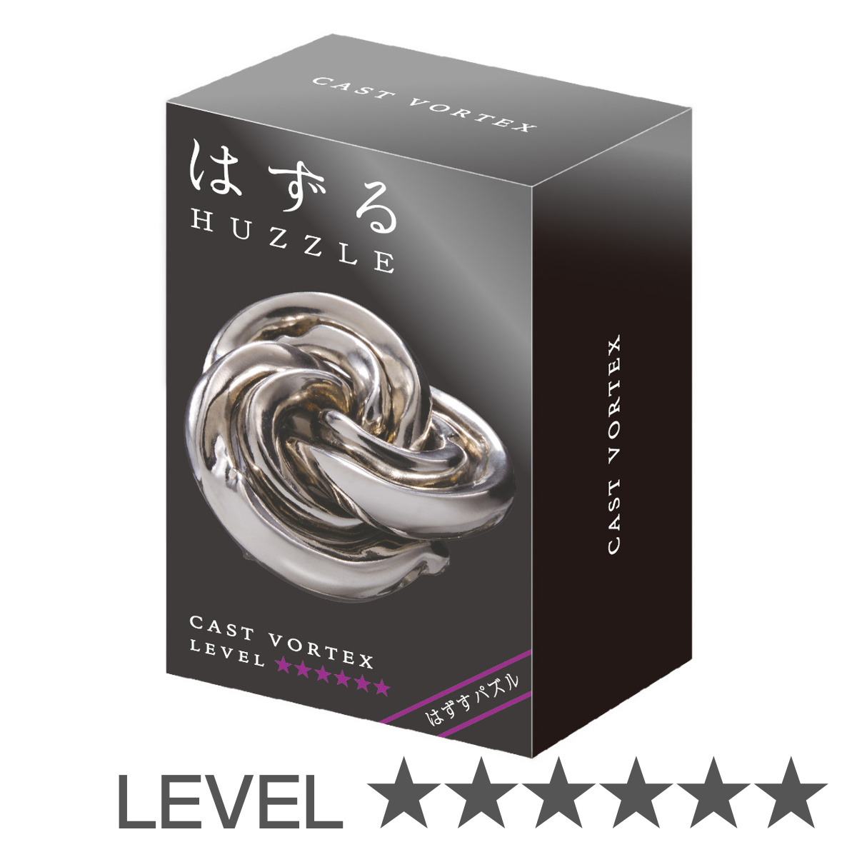 ヴォルテックス(渦)の形に絡み合うパズル3つのピースはそれぞれ螺旋のボディに2つの突起を持っています。組んだ状態では各ピースが平面的に一体化していますが、はずすためには複雑な絡み合いを立体的に解いていく必要があります。日本の造型家Akio Yamamotoによるデザインです。