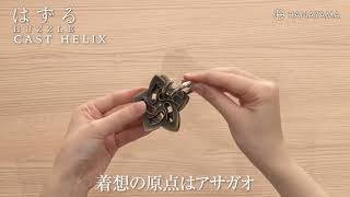 アサガオがモチーフのパズル着想の原点はアサガオで、つぼみが開花する様子と、つるが巻き付く動きがイメージされています。作家による「いくつも『イジワル』を加えてある」というコメントの通り、遊び心を感じるパズルです。日本の造型家Akio Yamamotoがデザインしました。