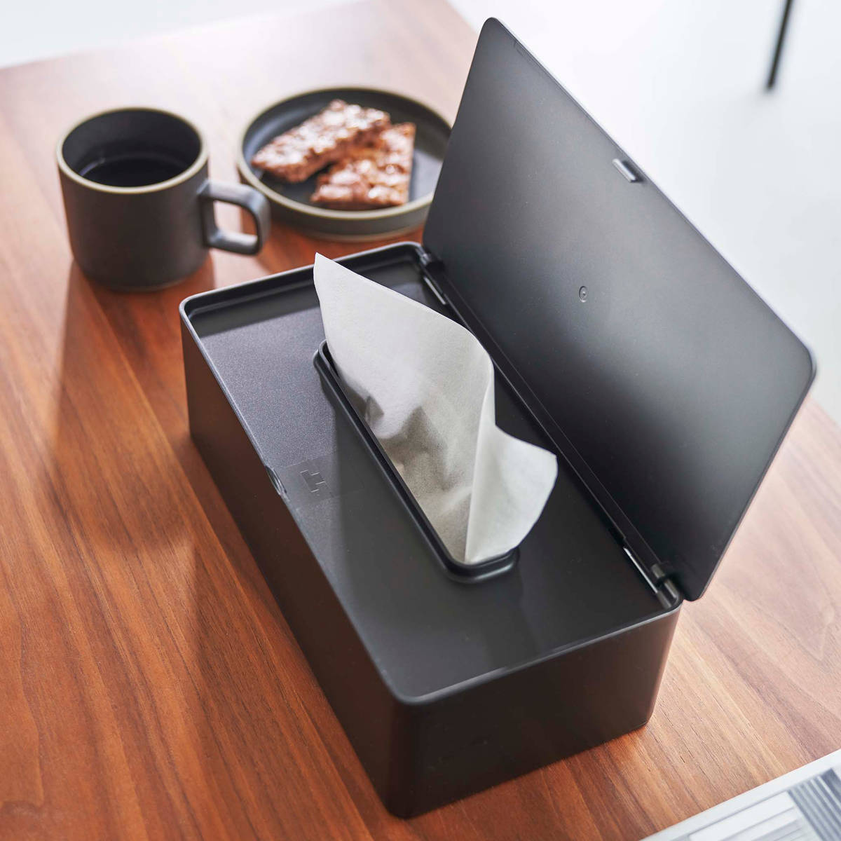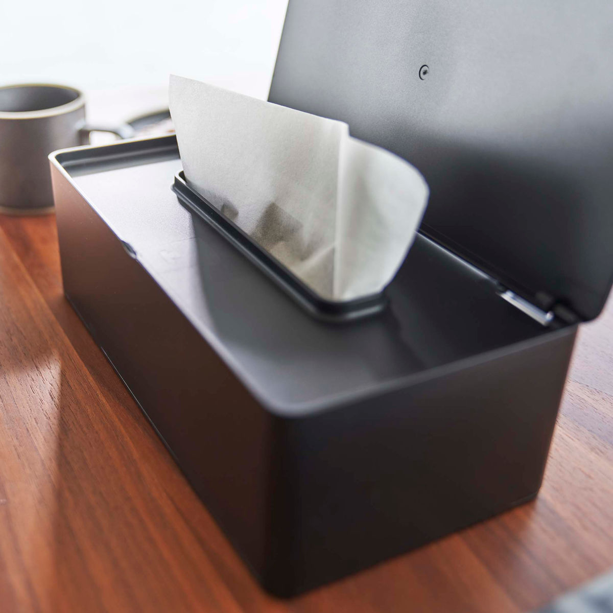 ●蓋付きティッシュケースでホコリも防げて衛生的です。