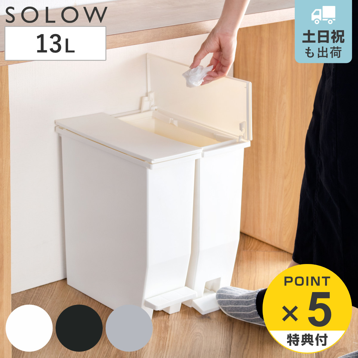 特典付き ゴミ箱 13L SOLOW ペダルオープンスリム ソロウ ( ごみ箱 ペダル 13リットル ふた付き スリム 分別 幅13.5 キッチン )
