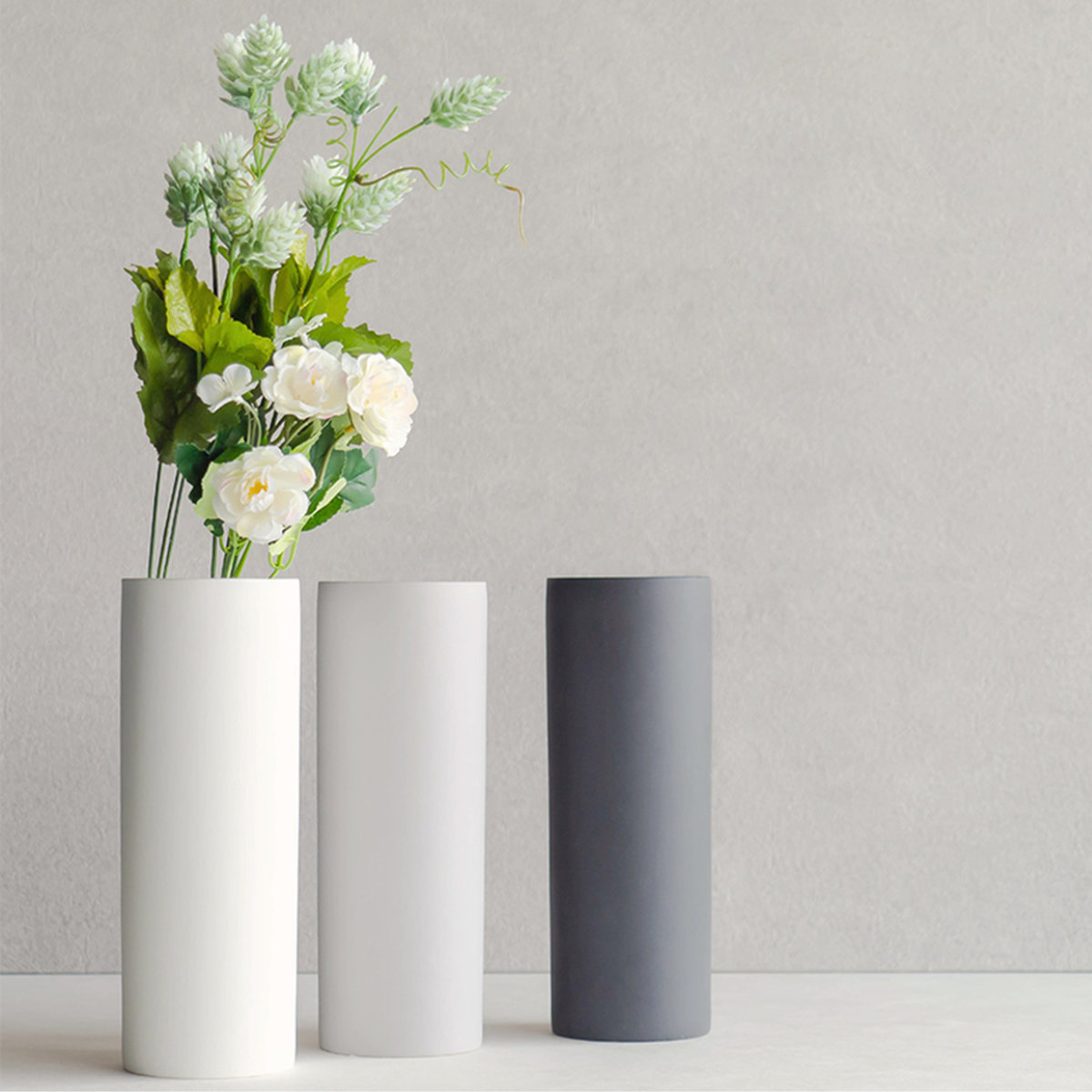円柱 花 植物 切花 花束 インテリア おしゃれ 卓上 床置き トールタイプ マット 色 インテリア雑貨 園芸用品 園芸 玄関 お部屋 室内 オシャレ 観葉植物 フェイク グリーン 枝 ドライフラワー 造花 ちょっと飾る ディスプレイ 飾り ギフト プレゼント シンプル 北欧 韓国 カフェ 新生活 ホワイト ブラック グレー 白 黒 灰色 LH10806