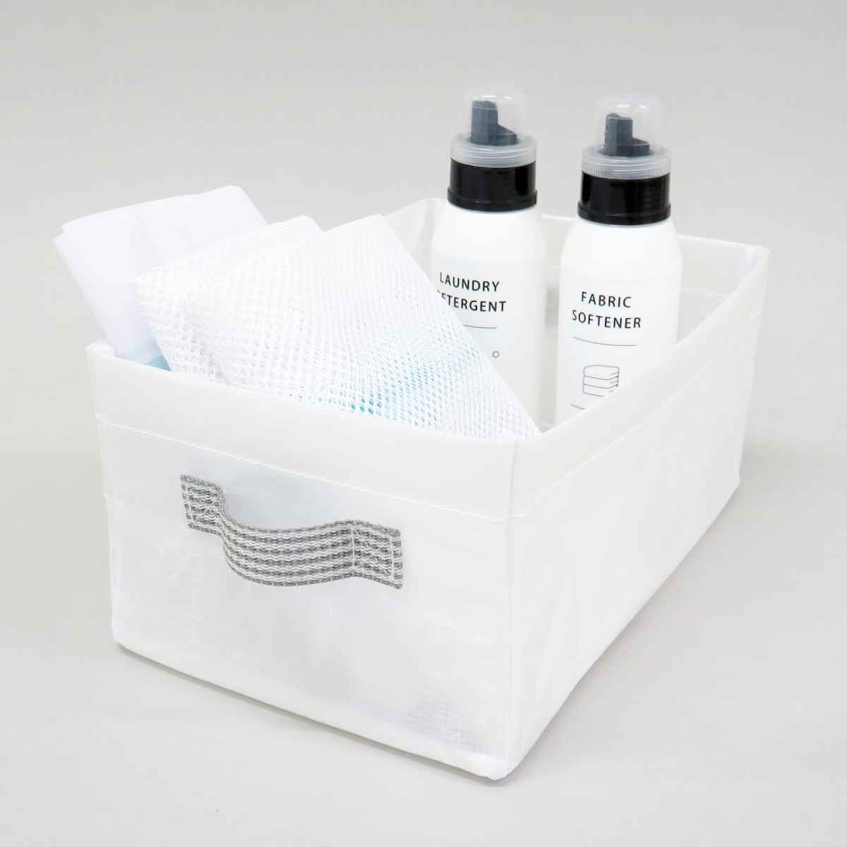 しなやかな収納 洗濯機まわりの整理に便利●洗濯機まわりの整理に便利な、柔軟性のあるランドリー収納ケースMサイズです。