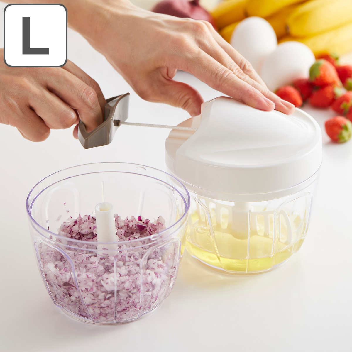 フードチョッパー みじん切り器 簡単みじん切りチョッパー L ( 手動チョッパー フードカッター みじん切り ハンディチョッパー ヘラ付き )