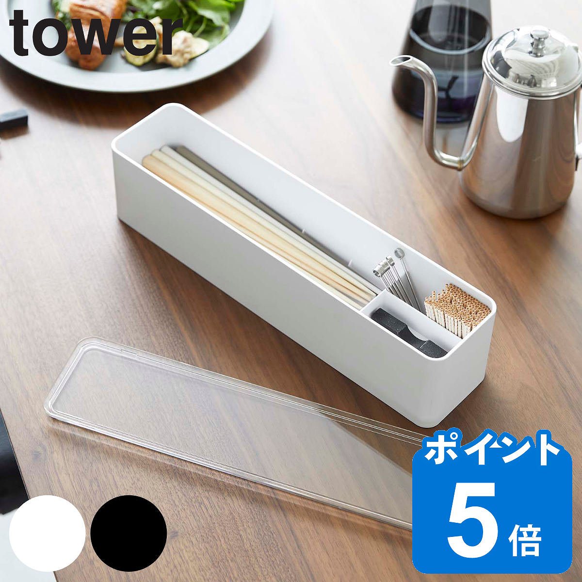 LH7979 LH10828 スプーン フォーク ナイフ 爪楊枝 卓上 収納 ホワイト ブラック yamazaki 4903208058858 箸置き ダイニング キッチン ふた付き フタ付き 白 黒 towerシリーズ おすすめ オススメ 便利 役立つ お洒落 オシャレ おしゃれ シンプル