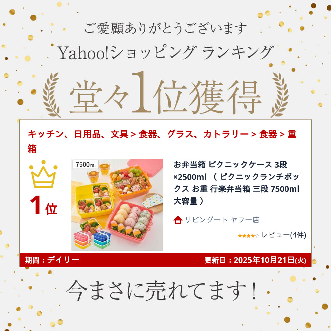 大容量のお弁当箱ピクニックや運動会、持ち寄りパーティなどにぴったりな大容量の3段のお弁当箱です。