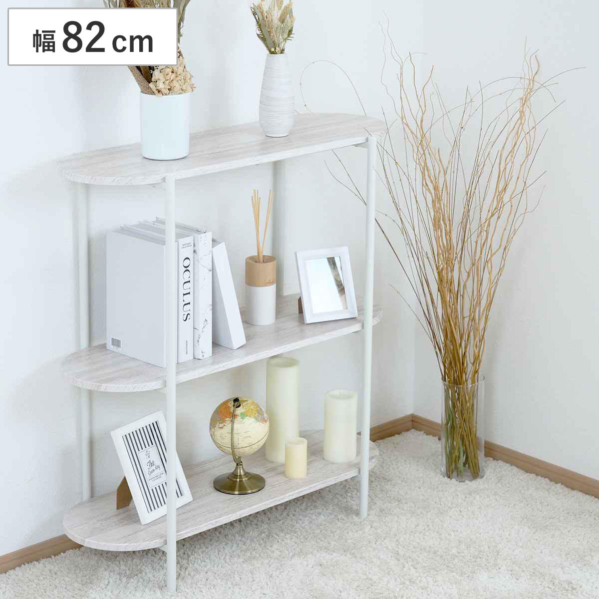 (アウトレット) オープンラック 幅82cm 3段 オーバル型 韓国インテリア ( LH17669 ラック シェルフ オーバル 本棚 収納 棚 飾り棚 木目調 )
