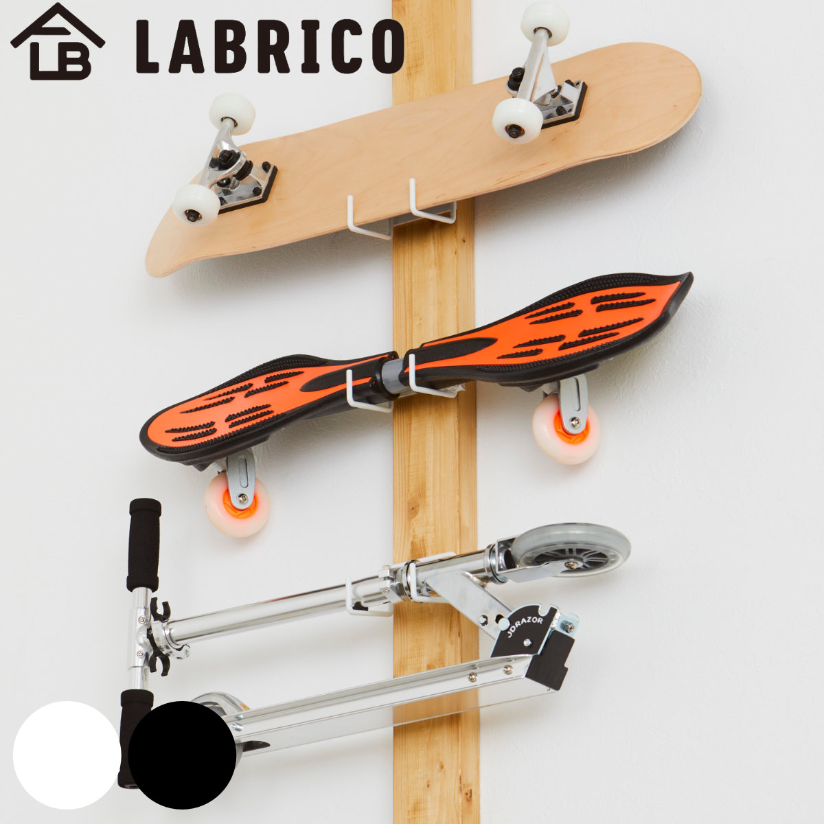 外遊び道具を壁掛けできるスケートボードハンガー簡単・手軽にDIYを楽しめるLABRICO(ラブリコ)シリーズのオプションパーツ「スケートボードハンガー」です。別売りの2×4材用アジャスターで立てた柱に取り付けて、室内で外遊び道具の収納を作ることができます。玄関周りで散らかりがちなキャスターボード、キックボード、スケートボード等を床置きせずにコンパクトに収納でき、玄関周りをスッキリ快適に整理整頓できます。