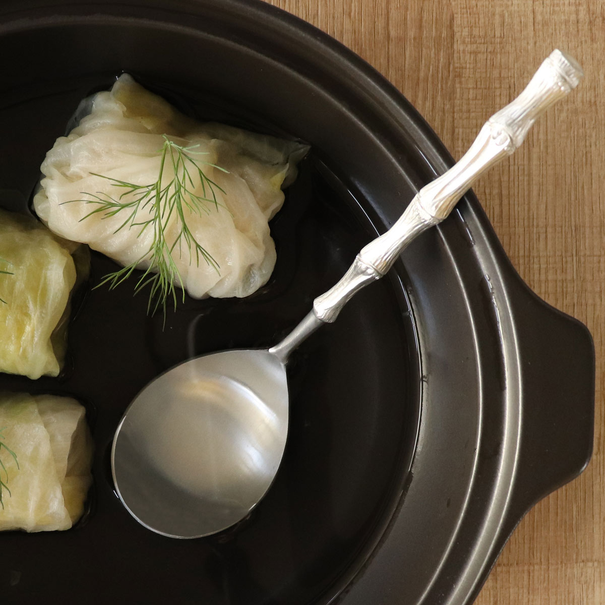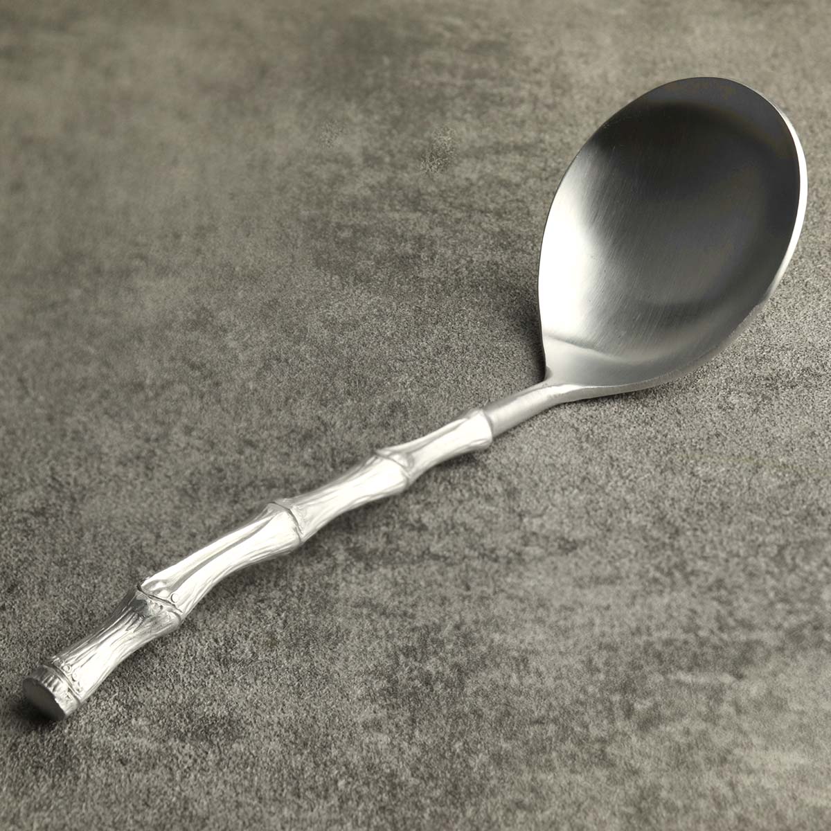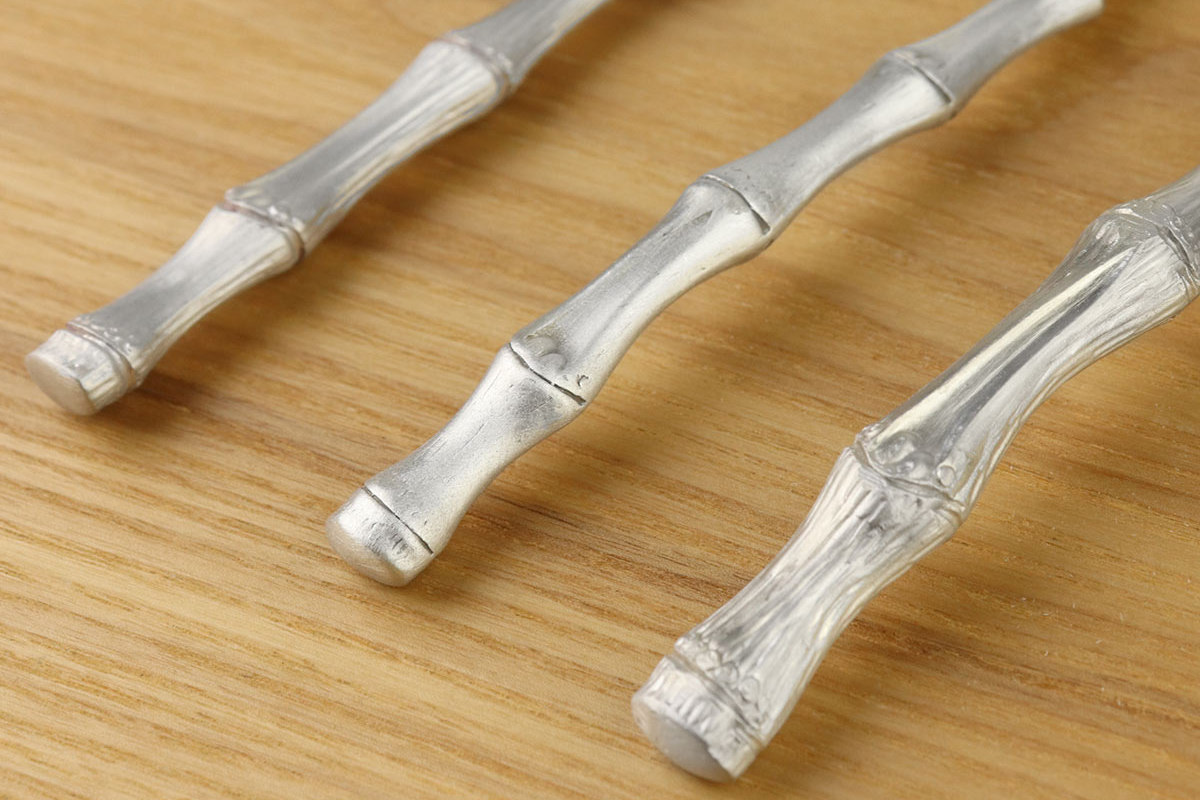 柄が竹の形にデザインされたレンゲは和のテイストたっぷり。マットなアルミの質感と相まって、食卓を落ち着きのある雰囲気に演出してくれます。
