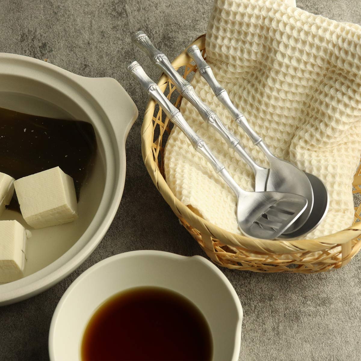 同じシリーズのキッチンツールを全部で3種類ご用意しております。軽くて丈夫なアルミニウム製の竹レンゲシリーズは使い勝手も抜群。気付くと手に取っている、そんな愛用品になるかもしれません。