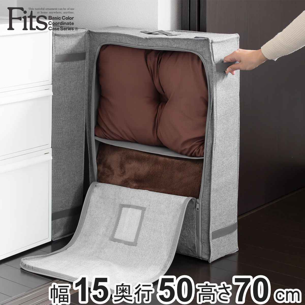 天馬 フィッツ 取っ手付き 布製 衣類 小物 折りたたみ すき間 整理整頓 フタ付き コンパクト 衣替え 防虫剤ポケット付き 蓋 ふた 付き クローゼット収納 ケース ボックス 折り畳み 隙間 収納術 整理 整頓 片付け 布団 洋服 タオル シーツ 小物収納 小物ケース 小物入れ 押し入れ 押入れ シンプル おしゃれ オシャレ お洒落 グレー 約 幅15 奥行50 高さ70 センチ cm ブランド 天馬製 てんま テンマ 便利グッズ 便利用品 人気 おすすめ オススメ 立てて収納 LH12627