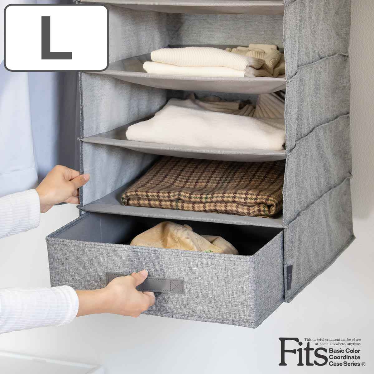 吊下げ収納インナーボックス L フィッツファブリック 幅40×奥行38×高さ13cm ( クローゼット 収納 吊り下げ ハンギングラック用 引き出し 引出し Fits )