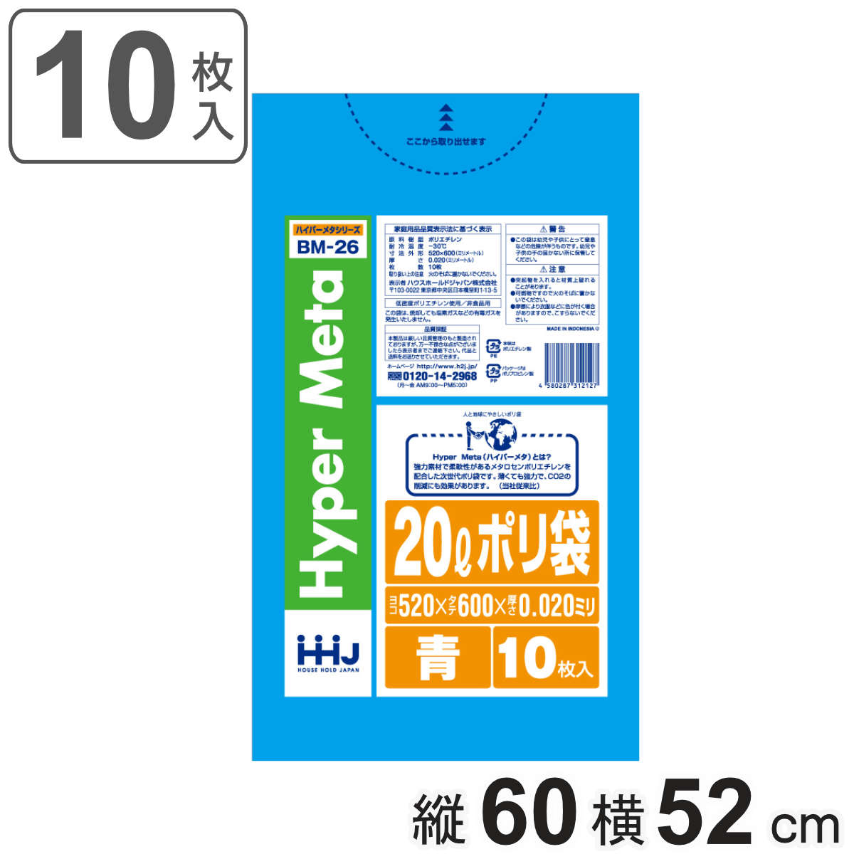 ゴミ袋 20L 60×52cm 厚さ0.02mm 10枚入 青 BM26 メタロセン配合 ( ポリ袋 ごみ袋 20リットル 10枚 ゴミ 袋 ブルー 縦60cm 横52cm ツルツル )