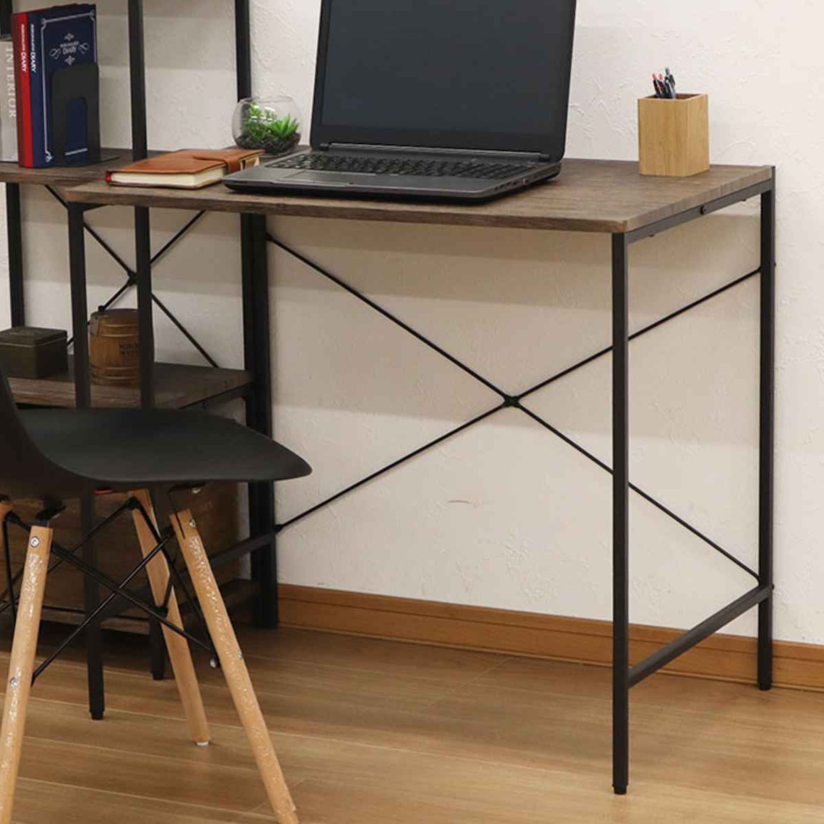 ヴィンテージ調の木目柄が美しいデスクダークブラウン×シックなブラックフレームがヴィンテージな雰囲気のデスクです。お洒落な見た目でありながらも、無駄のないシンプルなデザインなので、お部屋に開放的な印象を与えてくれます。