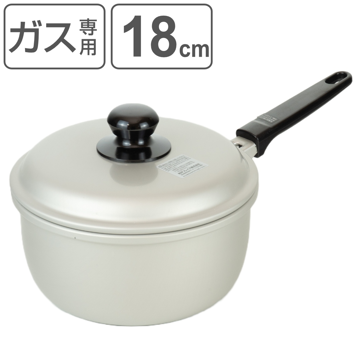 キズが付きにくいアルマイト加工のアルミ鍋普段使いにちょうどいい軽量の片手鍋です。鍋の内寸は直径18cmで、2〜3人分の味噌汁やカレーなどを調理するのに適したサイズです。アルマイト加工が施されているのでキズが付きにくく、長くお使いいただけます。
